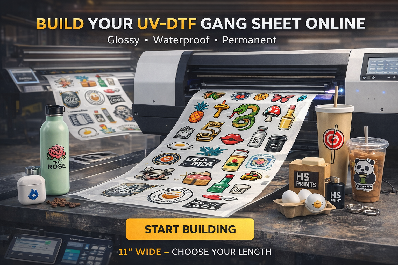 BUILD YOUR 11" WIDE UV-DTF (CLEAR) STICKER GANG SHEET